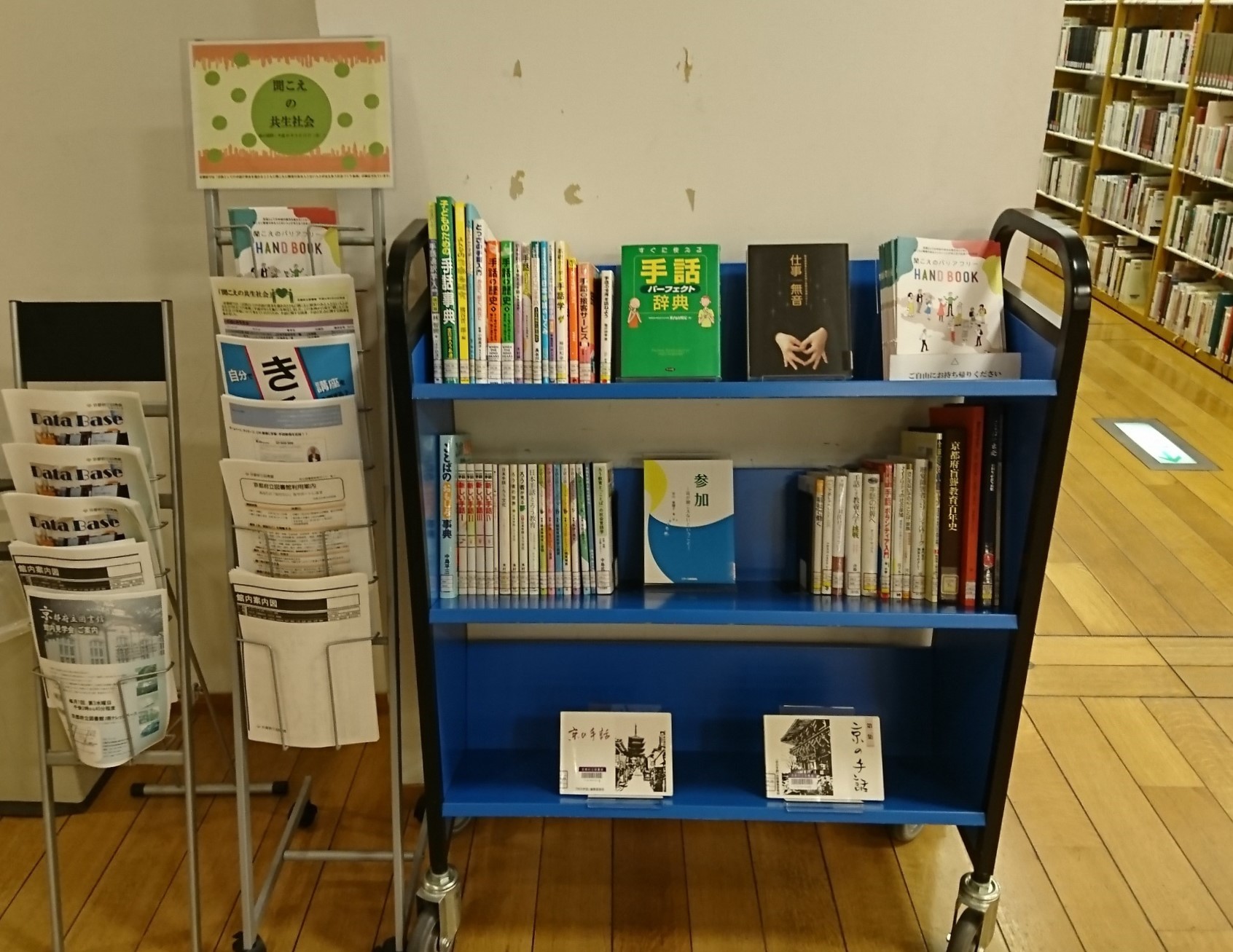 京都府では、「言語としての手話の普及を進めるとともに聞こえに障害のある人とない人とが支え合う社会づくり条例」(平成30年3月施行)を制定しました。この条例が目指す「聞こえの共生社会」の実現について考えていただくため、手話に関する図書、手話と社会に関する図書を集めました。