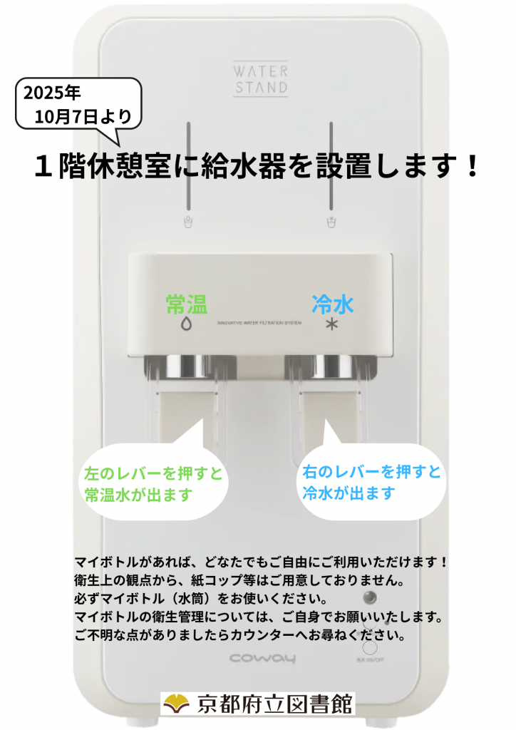 2025年10月7日より、1階休憩室に給水器を設置します!
