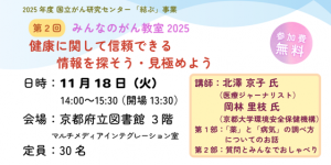 令和7年11月25日(土)に、当館で開催した、みんなのがん教室2025 第4回(一部)について、動画配信を開始しました。