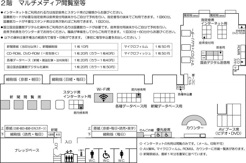 2階閲覧室では、映像・音声資料閲覧のためのAVブース、外部データベースが利用できます。